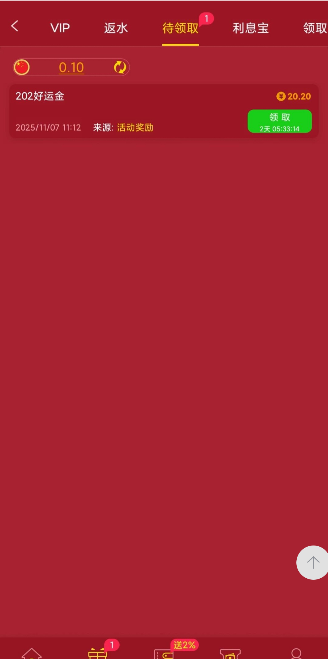 新葡京202又派发好运金了,有号的老哥们可以登录看看,我领了20.2没打出来